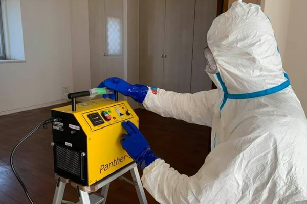 多様な臭気、臭度の強い臭気を短時間で強力に脱臭するため、災害復旧(火災、ボヤ、水害の後)、特殊清掃(孤独死、ゴミ屋敷)といった重篤な臭気の現場からタバコ臭、ペット臭、カビ臭といった日常的な臭気まで幅広く対応可能な唯一の脱臭法です。